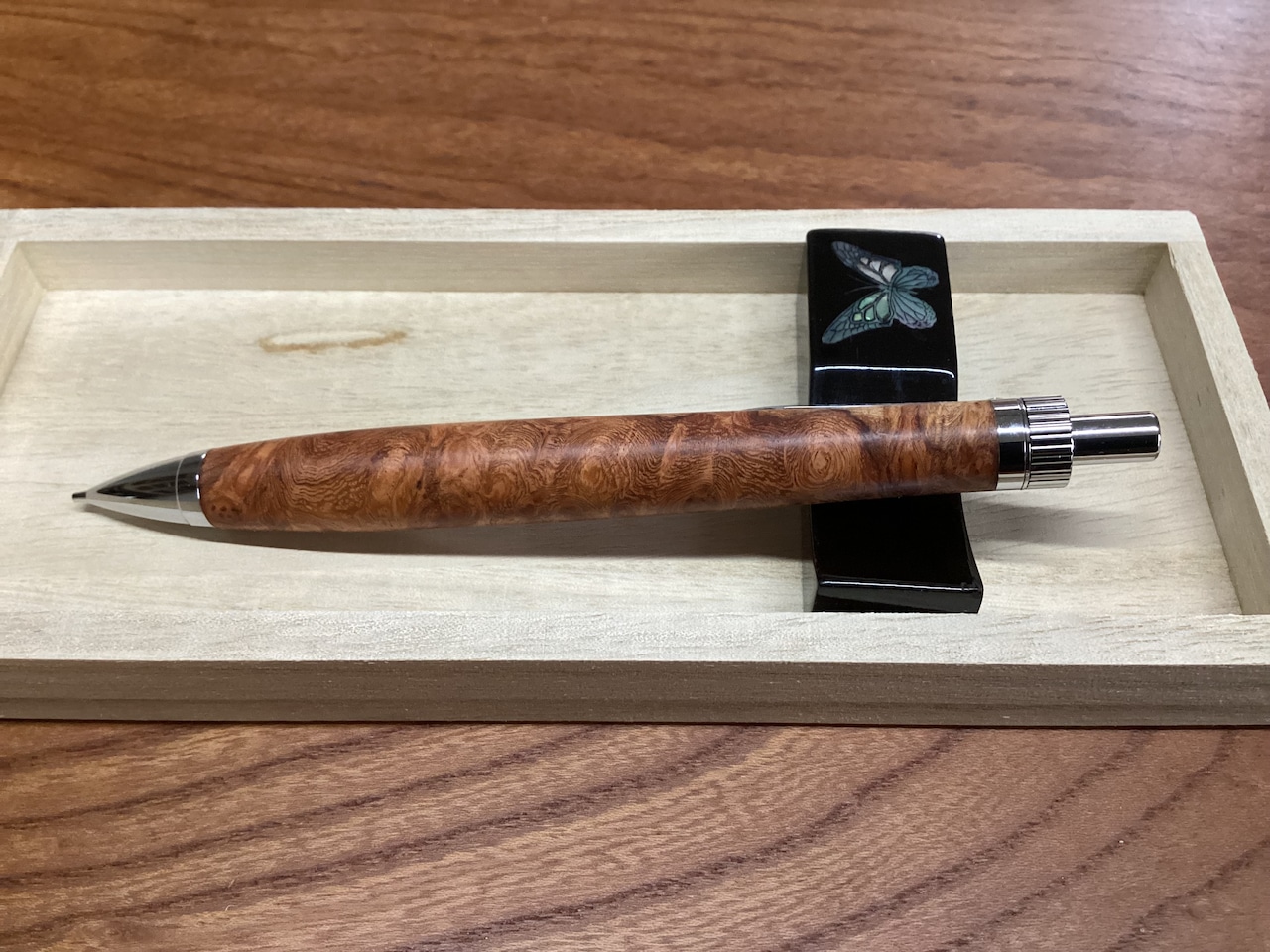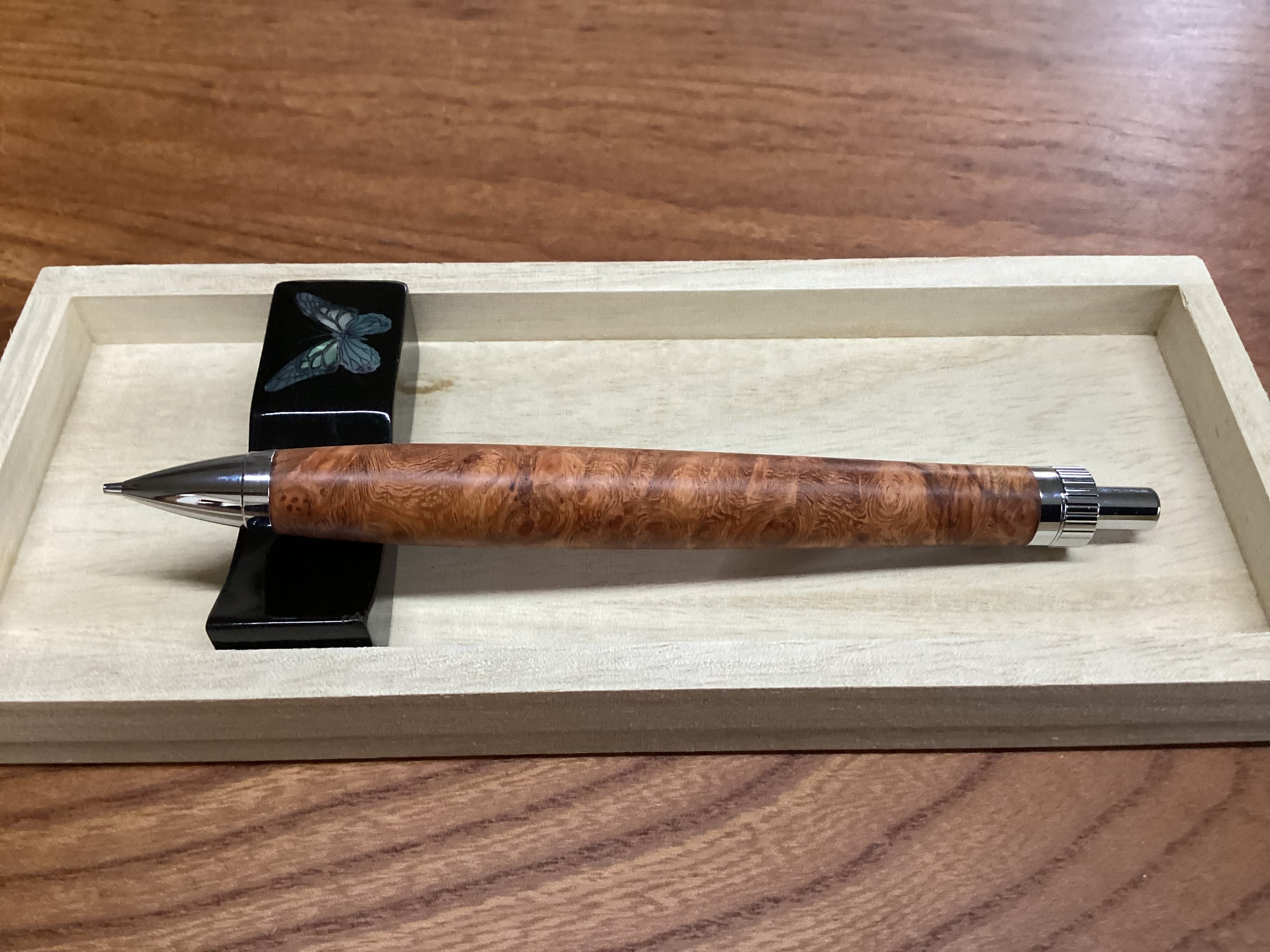 花梨葡萄杢で製作致しました、美しいシャープペンシルです。