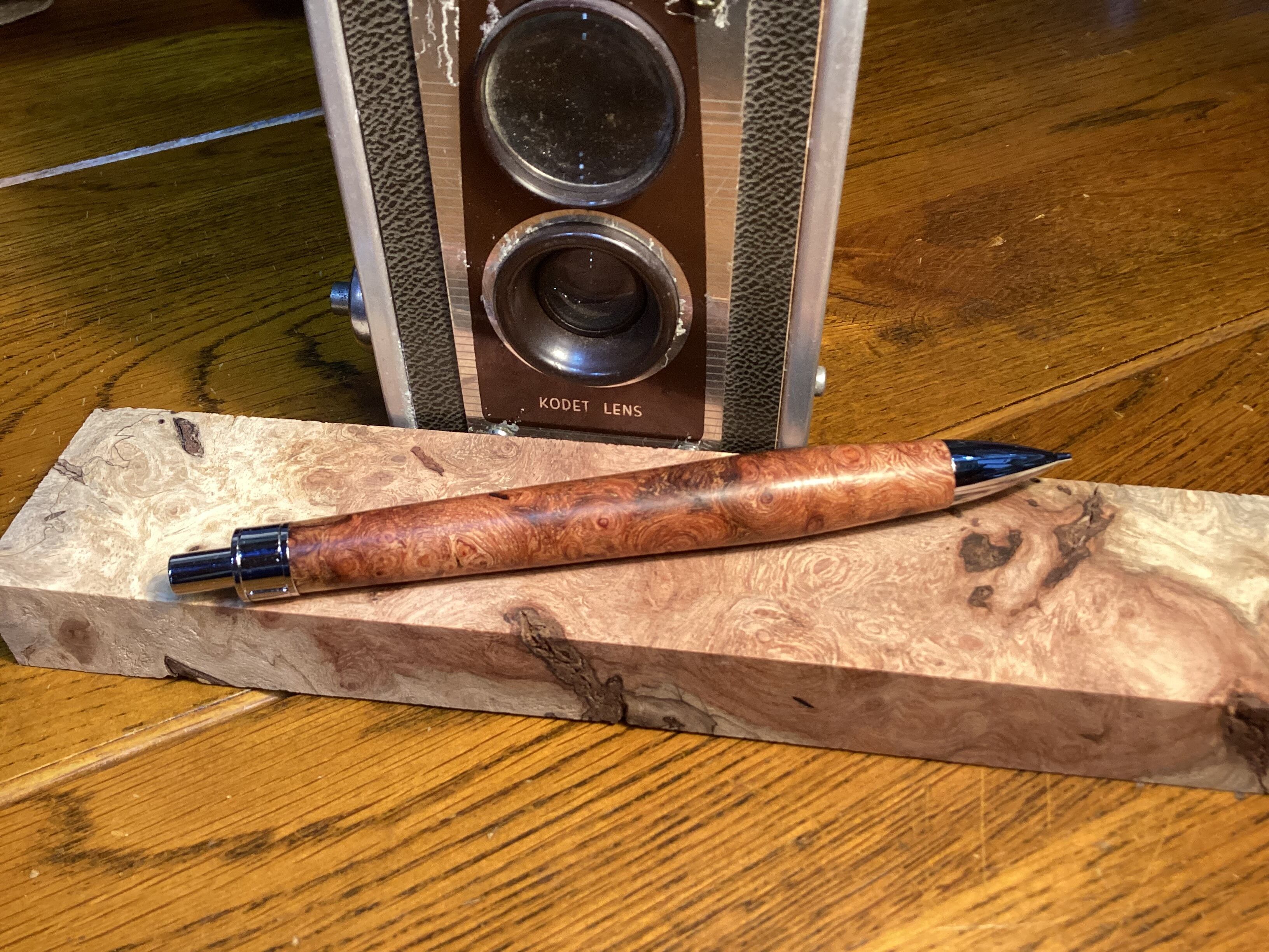 「花梨 瘤杢」(花梨の紅白)で製作致しました、花梨の瘤杢が美しいシャープペンシルです。