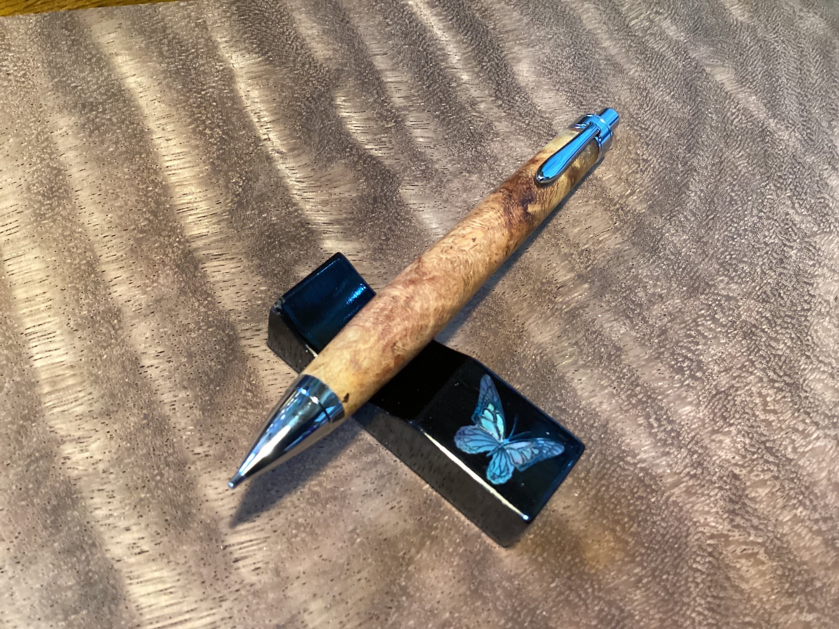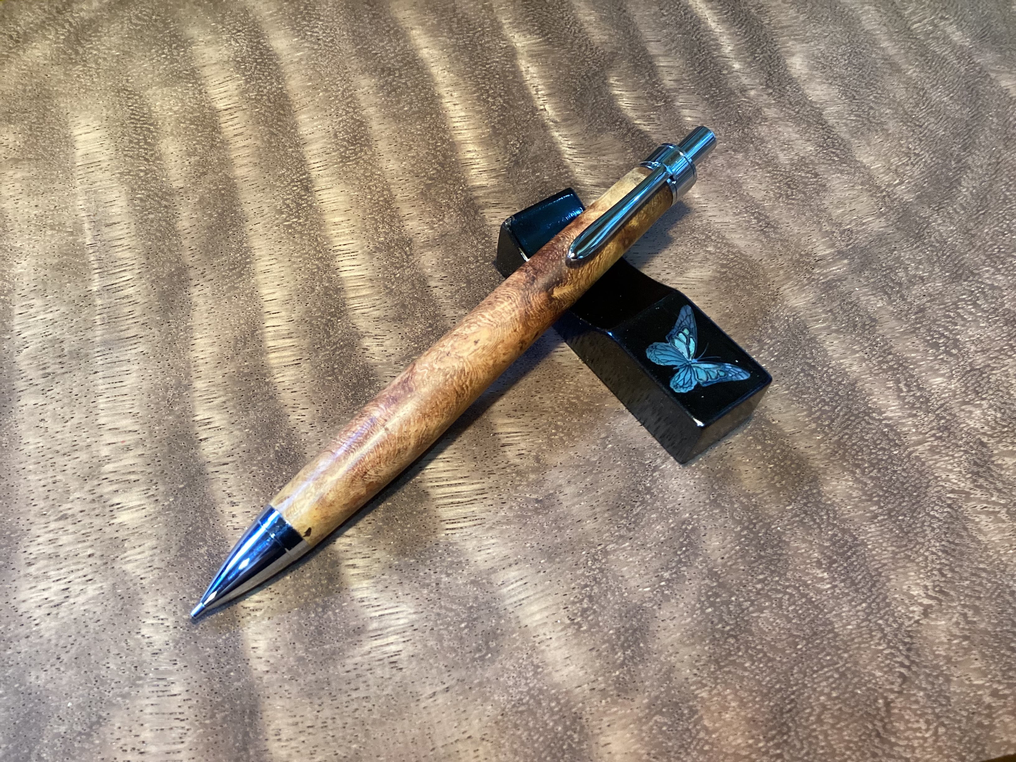 「花梨 瘤杢」で製作致しました、花梨の瘤杢が美しいシャープペンシルです。